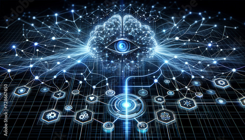 Futuristic interface merging with neural network architecture for advanced technology and business.