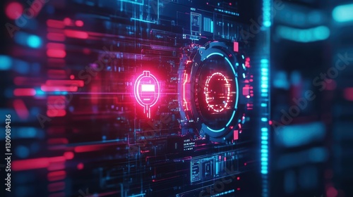 Futuristic Interface Radiating Red Light from Center Creating a Dynamic and Engaging Visual Experience in a High-Tech and Innovative Environment