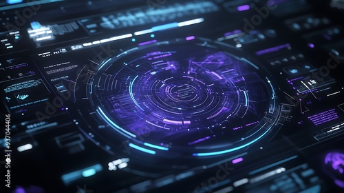 Futuristic Interface with Circular HUD and Data Display