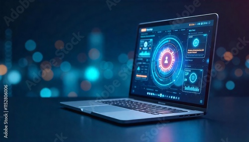 Futuristic Laptop Screen Showing Data Analytics User Interface