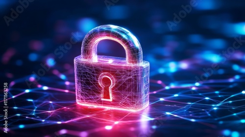Futuristic Lock with Tech Overlay on Minimalist Background