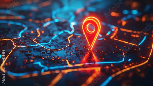 Futuristic map with highlighted locations, representing GPS and navigation concepts