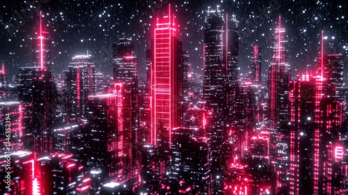 Futuristic Metropolis Featuring Glowing Lights Under a Starry Sky