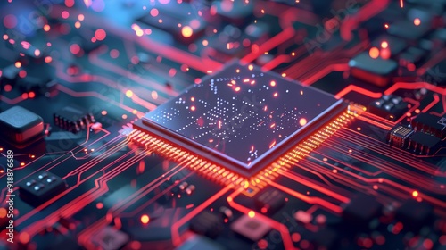 Futuristic Microchip on High-Tech Circuit Board