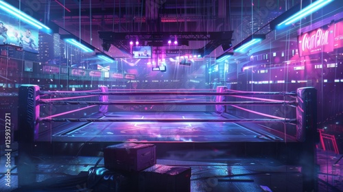Futuristic Neon Boxing Ring in Urban Setting at Night