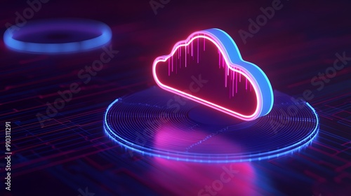 Futuristic neon cloud computing symbol on a digital background, representing modern technology, data storage, and cybersecurity.