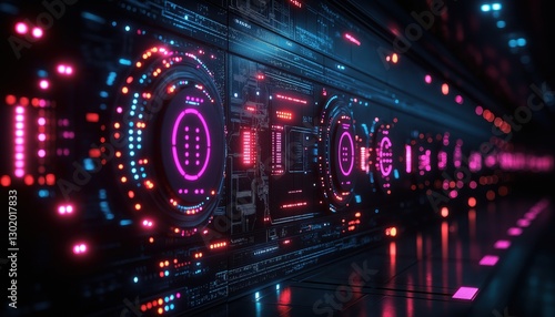 Futuristic Neon Data Wall in Server Room - Technology Background