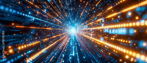 Futuristic Network Connection in Space, Abstract Technology Background with Glowing Lines and Digital Mesh