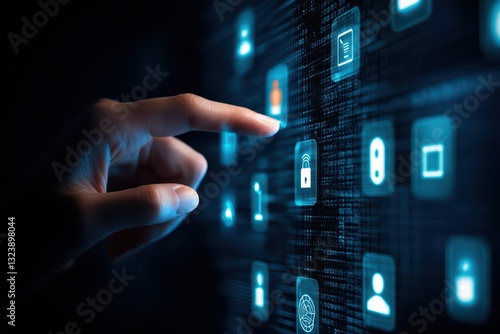 Futuristic Office Communication Concept with Holograms and Interactive Touch Interface