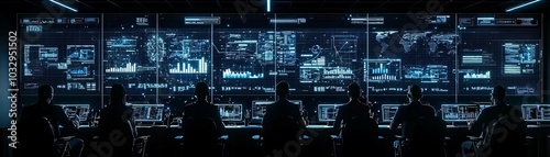 Futuristic Office Space with Digital Displays