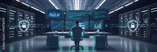 Futuristic Office with Advanced Workstation and Neon Lighting