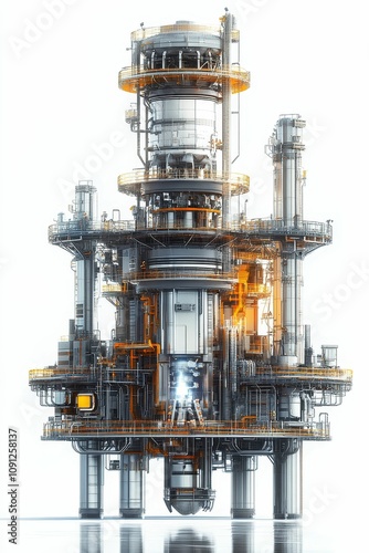 Futuristic offshore industrial platform, complex design.