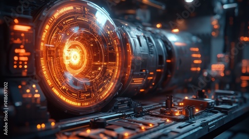 Futuristic Orange Glowing Engine Core