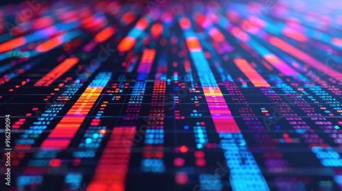 Futuristic Predictive Analytics Data Charts with Copy Space, Focus on Grids, Deep Depth of Field