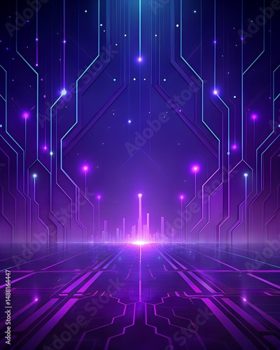 futuristic purple gradient background with glowing circuit board design