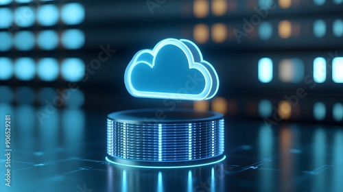 Futuristic representation of cloud computing technology in a digital setting with neon lights and modern data storage concept.