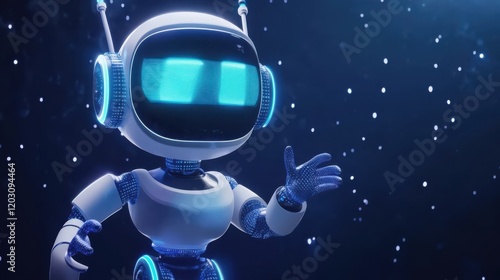 Futuristic robot character interacting in a starry space environment, showcasing technology and imagination
