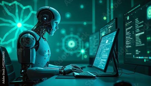 Futuristic Robot Coding AI Digital Technology Artificial Intelligence Cyberspace Programming