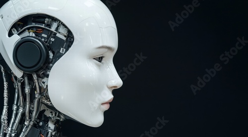 Futuristic robot head close-up