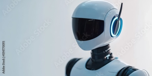 Futuristic robot with a sleek design and headset, symbolizing advanced technology and artificial intelligence.