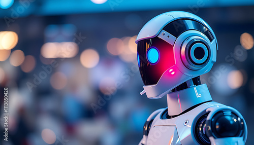 Futuristic Robot with Integrated Screen in a Tech Lab, robot cyborg