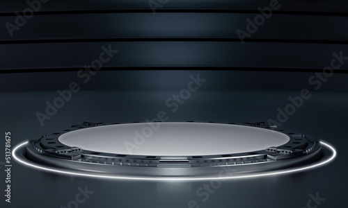 Futuristic Sci Fi Empty Stage in big hall room. Future background for design. 3d rendering.