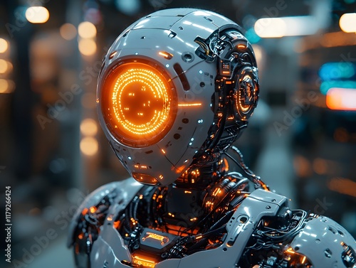 Futuristic Sci Fi Robot Charging Its Power Core with Glowing Electric Currents