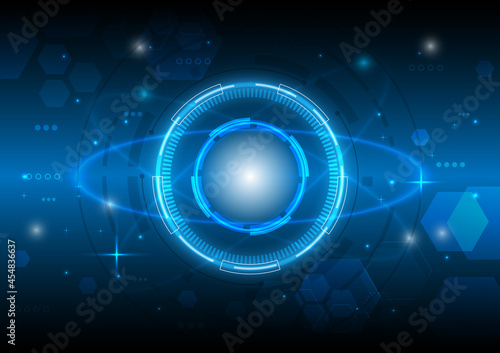 Futuristic Sci-Fi glowing HUD element and particle engineering. Abstract hi-tech particle background. Hologram and head-up display interface. Virtual reality technology innovation