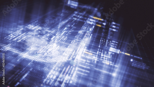 Futuristic screen display matrix, hi-tech digital data telemetry with encrypted numbers, display dynamic background for computer desktop screen display format
