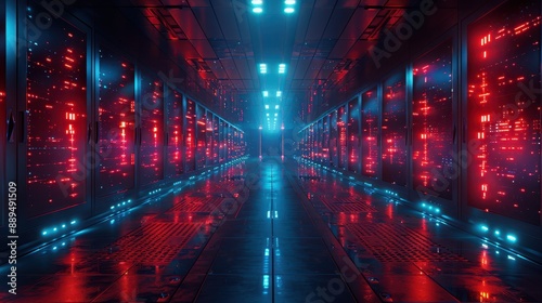Futuristic Secure Data Center with Holographic Data Visuals - Technology Concept Design