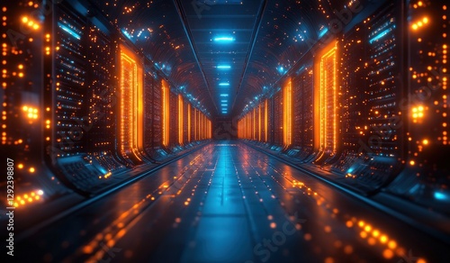 Futuristic Server Room Cyberpunk Data Center 3D Rendering Technology