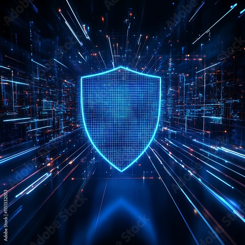 Futuristic Shield Symbol with Abstract Data Background Representing Cyber Security and Protection Concept