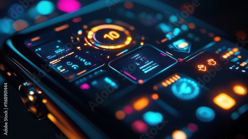 Futuristic Smartwatch Interface: Neon Glow Digital Display