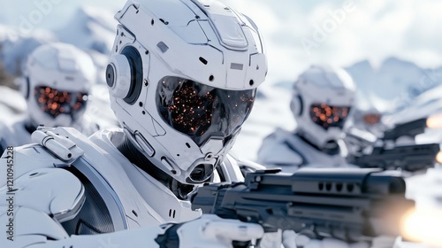 Futuristic Soldiers in Battle Gear Pointing Advanced Weapons Forward