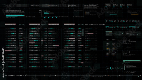 Futuristic source code digital data telemetry motion graphic display screen with user interface display for digital background computer desktop display screen