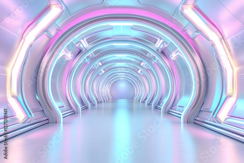 Futuristic spaceship corridor, glowing lights, vibrant colors, abstract background, sci-fi design