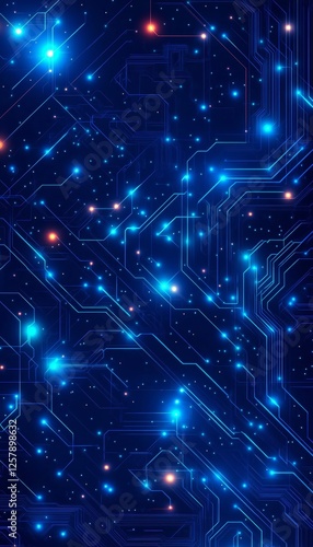 Futuristic Tech Background, Blue Abstract Digital Circuit Pattern With Glowing Light Points