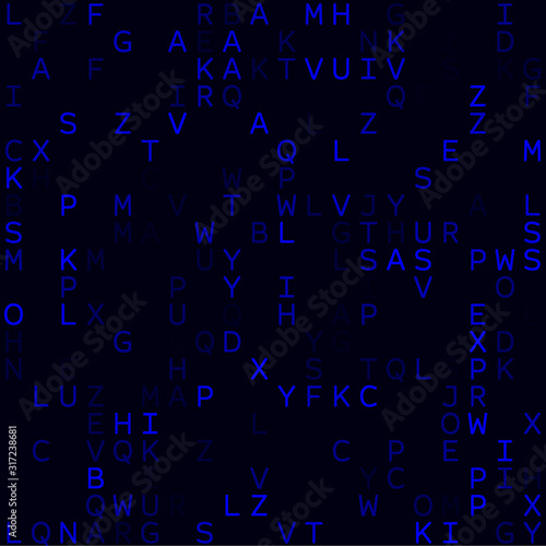 Futuristic tech background. Blue sparse alphabetical background. Small sized seamless pattern. Powerful vector illustration.