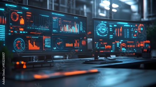 Futuristic Tech Data Analysis Monitors - Cybersecurity