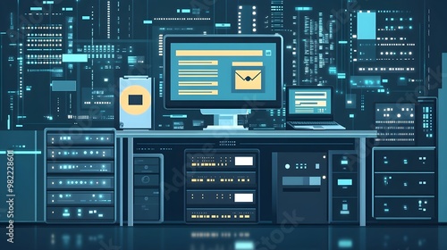 Futuristic Tech Server Room with Digital Interface