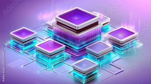 Futuristic Technology Background with Abstract Microchip Structures and Vibrant Light Effects for Digital Innovation and Data Processing Concepts