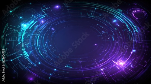 Futuristic Technology Background with Circular Elements and Glowing Light Effects for Science, Computing, and Innovation