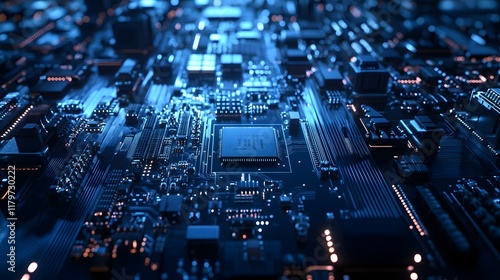 Futuristic technology circuit board glowing in blue