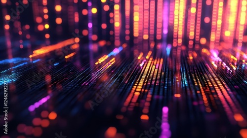 Futuristic technology, close-up of holographic display with glowing data