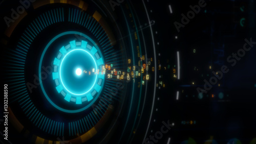 Futuristic Technology Data Interface with Digital Code Streams, High-Tech HUD Elements, Cyber Data Visualization, and Advanced Coding Patterns for Innovative Software and System Development