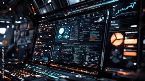 Futuristic Technology Interface, A Sci-Fi Computer Screen Displaying Complex Data