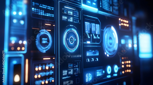 Futuristic Technology Interface: Abstract 3D Design with Blue Glowing Lights