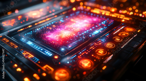 Futuristic Technology Interface with Glowing Lights - 3D Illustration