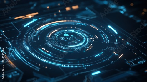 Futuristic technology interface with intricate circular graphical displays displayed