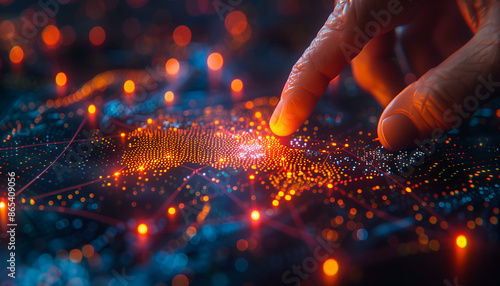Futuristic Touch Interface with Glowing Network Connections and Data Points